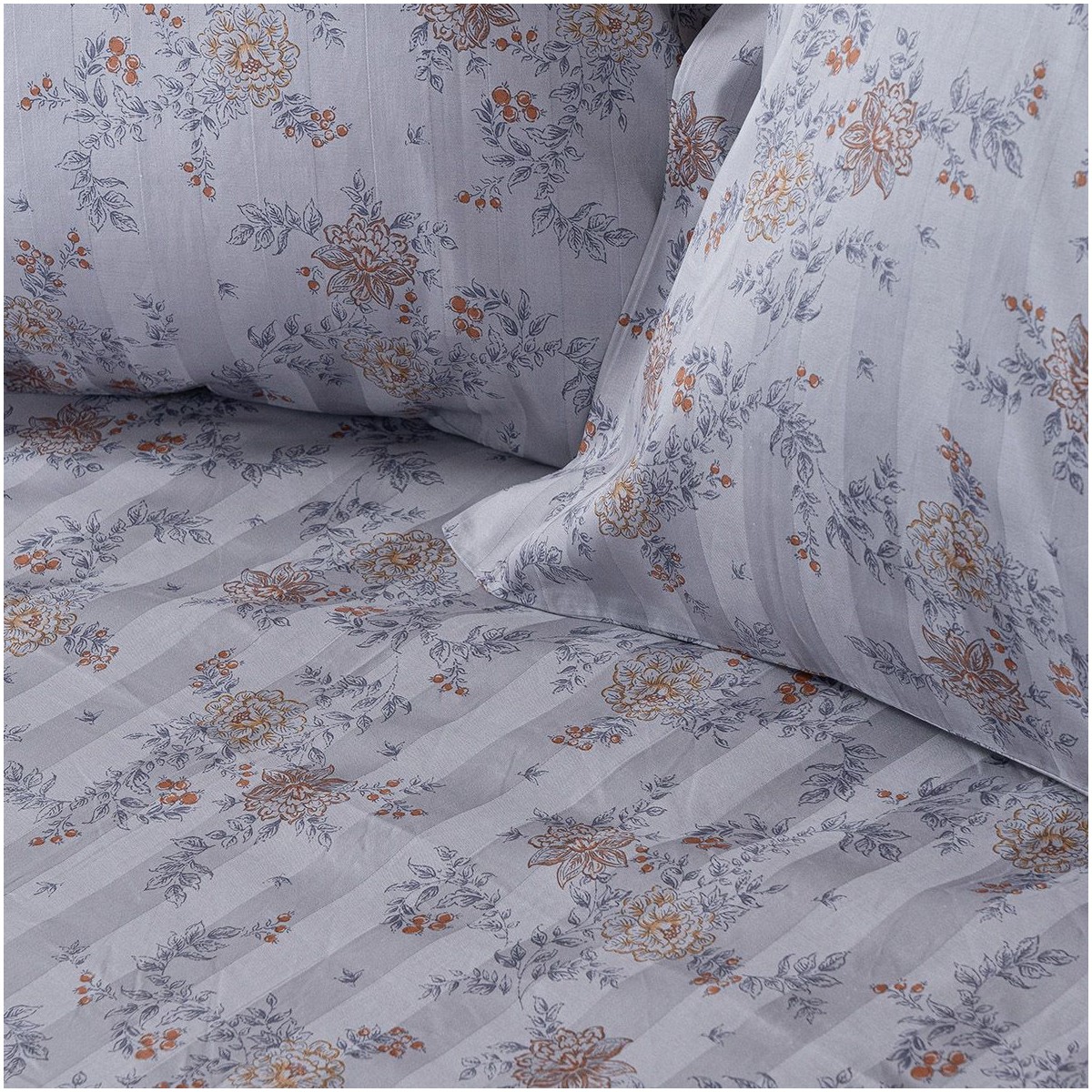 Beauty Home Σετ σεντόνια υπέρδιπλα με λάστιχο Art 12212 Jasmine 100% Βαμβακοσατέν 300tc 170x200+30 Γκρι