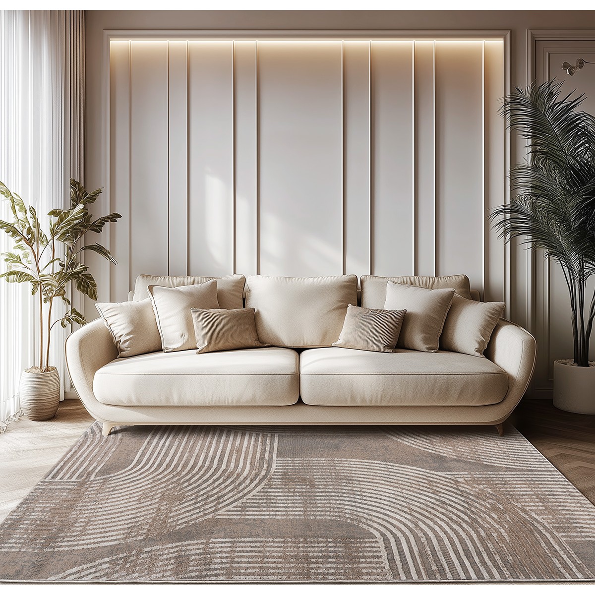 Χαλιά Serena Collection – Beauty Home Η σειρά Serena Collection της Beauty Home είναι η ιδανική επιλογή για όσους αναζητούν κομψότητα, πρακτικότητα και οικονομία. Με σύγχρονα γεωμετρικά και γραμμικά σχέδια σε ουδέτερους τόνους μπεζ και γκρι, τα χαλιά Serena ταιριάζουν απόλυτα σε κάθε χώρο, συνδυάζοντας στυλ και λειτουργικότητα. Χαρακτηριστικά προϊόντος: • Ποιότητα: P.P. Heat Set με Shrink Polyester • Βάρος: 1600gr/m² • Πυκνότητα: 205.000 points/m² • Ύψος πέλους: 11mm ✔Πολύ καλή τιμή χωρίς συμβιβασμούς στην ποιότητα ✔Εύκολα στη χρήση – ιδανικά για το καθημερινό τίναγμα και πλύσιμο ✔Ανθεκτικά στη φθορά και πρακτικά για όλους τους χώρους