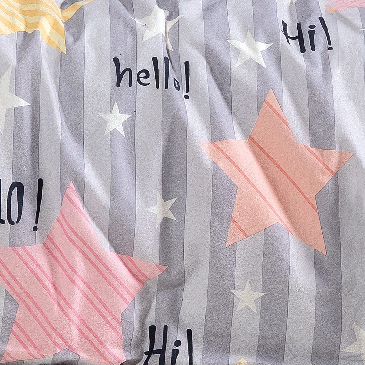 • Ένα παιχνιδιάρικο σχέδιο με γκρι φόντο και αστέρια σε απαλές αποχρώσεις του ροζ, του κίτρινου και του πορτοκαλί. Φέρνει μια νότα αισιοδοξίας και χαράς στο δωμάτιο.